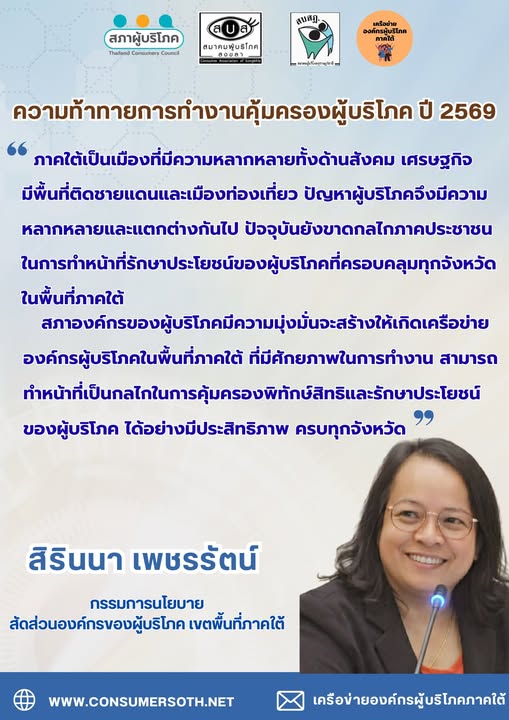 “ภาคใต้เป็นเมืองที่มีความหลากหลายทั้งด้านสังคม เศรษฐกิจมีพื้นที่ติดชายแดนและเมืองท่องเที่ยว ปัญหาผู้บริโภคจึงมีความหลากหลายและแตกต่างกันไป ปัจจุบันยังขาดกลไกภาคประชาชนในการทำหน้าที่รักษาประโยชน์ของผู้บริโภคที่ครอบคลุมทุกจังหวัด ในพื้นที่ภาคใต้
