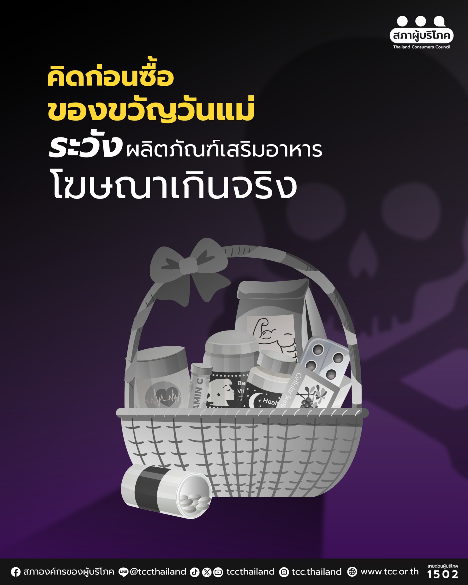 วันแม่ปีนี้ สภาผู้บริโภคเตือนภัยลูกหลาน หากคิดจะมอบ ผลิตภัณฑ์เสริมอาหาร ให้คุณแม่ เช็กให้ชัวร์ ระวังสินค้าโฆษณาเกินจริง แทนที่จะเสริมสุขภาพ อาจกลายเป็นภัยเงียบ พลาดโอกาสการรักษาที่ถูกต้องจากแพทย์ ส่งผลเสียในระยะยาว